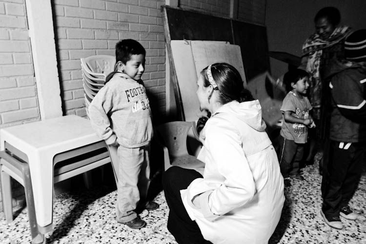 i stay in the van for a while, then finally leave to catch some air. the rain falls on my skin as i head toward the broken road. i stop when i start to hear a beautiful sound. a woman is worshipping from a building on my right. the air is blue but a yellow light sings from the open door. i go inside. there is worship going on in spanish but it is a song i recognize very well. "i am yours" by misty edwards. many of my squad mates are worshipping in the plastic seats of this run-down building. i look to my left and see one of my squad mates crouched down speaking spanish to native children. they immediately melt my heart. their smiles are wide and their eyes glisten with joy. i follow them into a back room painted neon green, where there are more little ones eagerly waiting. a couple of my squad mates and i speak to them, asking them questions in the little spanish that we know. they smile at us and answer our questions in perfect spanish. we play games with them until we are told that the vans are ready to move again. i hug them each, telling them in spanish that they are precious.