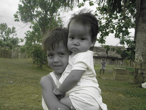 iquitos, peru. this seven-year-old child takes care of his little sister every day, all day.