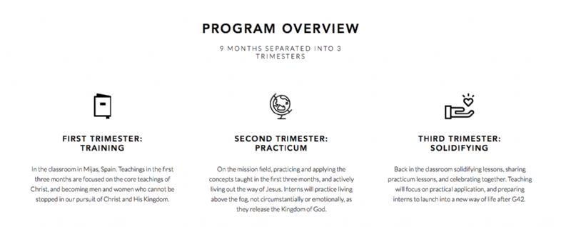What does G42 mean and what is it? G42 stands for the “42nd generation” and describes people who choose to “become like Christ” in how they live and love others (based on scripture, I’ll link the video explaining it at the end). The program is a 9 month leadership academy based in Mijas, Spain. They exist “to mobilize Christ-followers to plant or lead missional communities that establish the Kingdom of God around the world.” I truly believe that God is calling me to either start or come alongside and build up a missional community back home in SC and this school that will further prepare me to do just that.