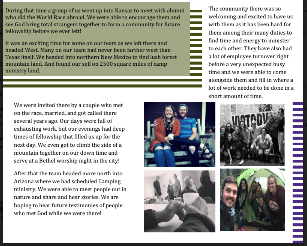 Here is an update I wrote for a church that has partnered in prayer with our team!