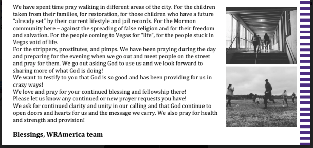 You can also read my teammates blogs and they need prayer too and also are not yet fully funded for the ministry we are doing! (Our funding above goes towards gas, car repair needs, lodging, food, and ministry outreach costs. Nothing personal is provided through our pooled ministry funds.)