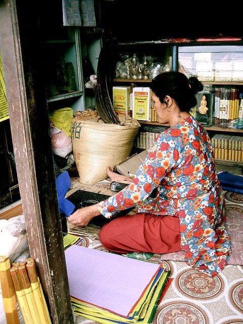 Buddhists print prayers on multi-colored flags using wood blocks and string them like