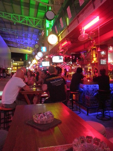 In the darkness of Patong, where women dance in glass boxes or cages, on bars and poles, I have seen clearly what the gates of hell look like. (In the photo, each circular sign is another bar. There are literally hundreds.)