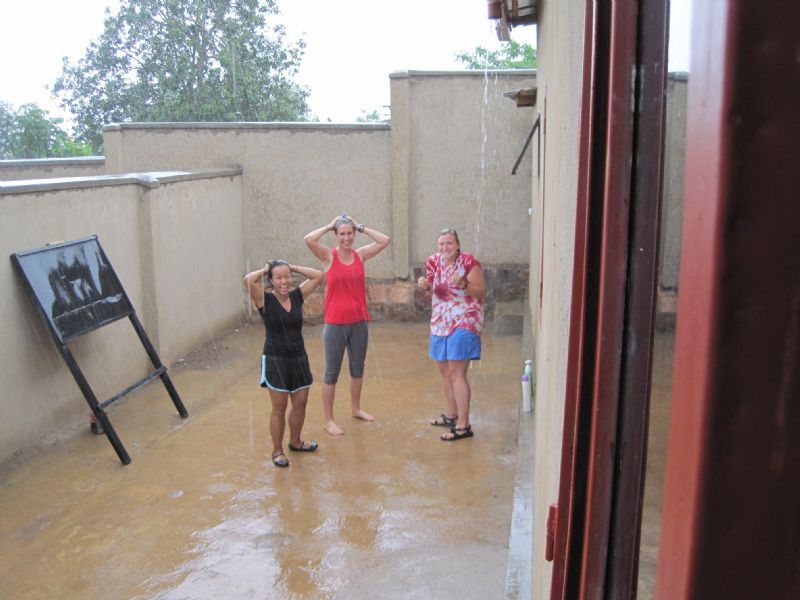 Sometimes on the race when it rains you take advantage of it… bucket showers don’t exactly wash long hair very well, but rain water does the trick.