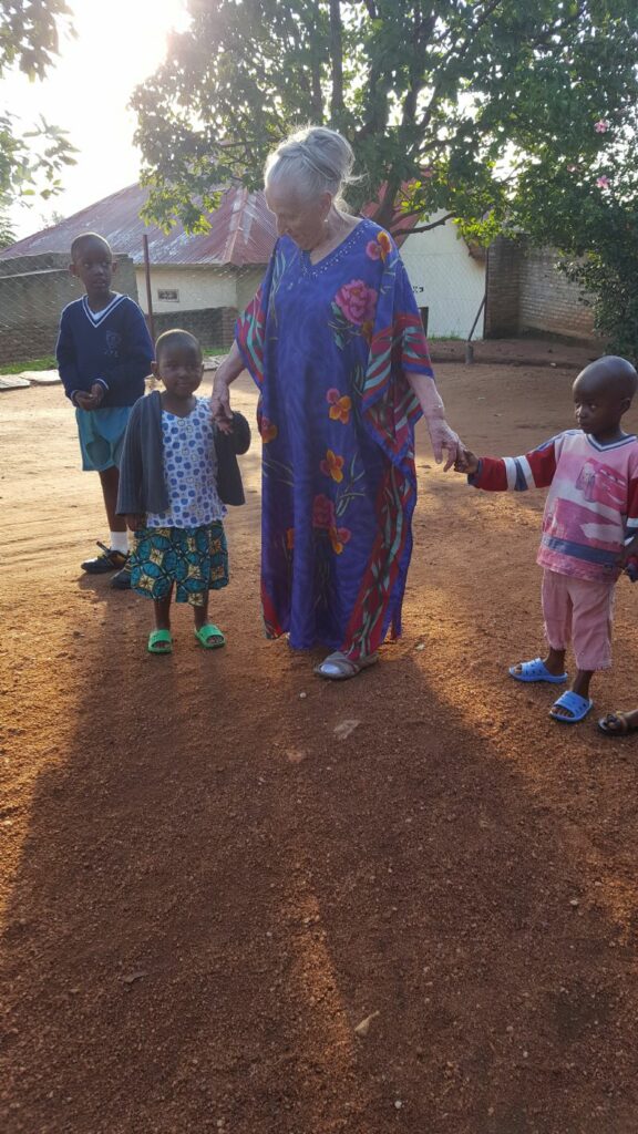 Benita and Jacob holding Mama Arlene’s Hand while walking the older kids to school.