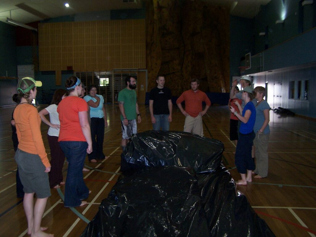 We were given the task of taping one large round of tarp to 5 other large rounds of tarp. It was a bit of a challenging task that one might see as useless but after 3.5 hours of work we realized it was very important. This tarp will hold a world map weighing a half ton. When people come to the Call for All event, they will be able to walk on this map, praying for direction from God in where He wants them to serve. I’m so anxious for our task tomorrow when we get to open the map and gently lay it on this tarp. IT will take 20 people to carry it because of its heaviness. It was made in China and took a fork lift to get it to New Zealand.