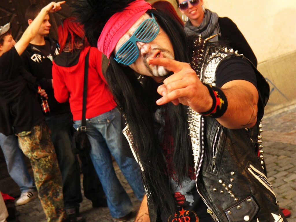 After seeing kids on stilts, half-dressed girls, upside down crosses, bloody babies on the cross, Satan tattoos, horror masks, teens and young adults wasted from beer, we were told by a young girl wearing a box that we were in the middle of a Freedom Parade.