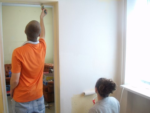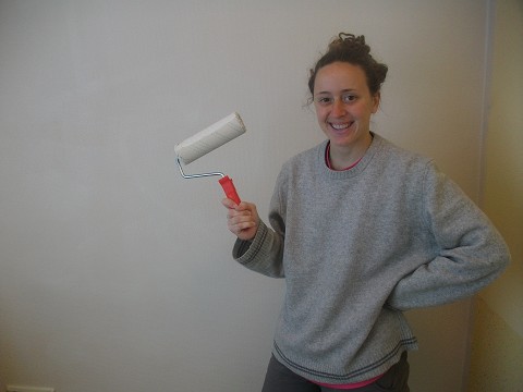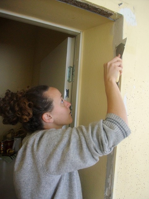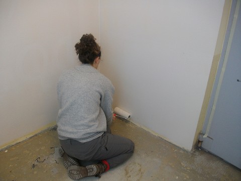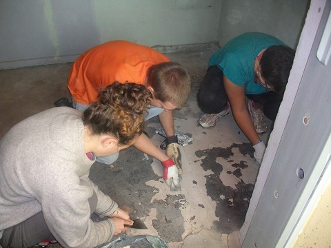 We started by clearing out this room, sweeping and then scraping the mold off the floor!