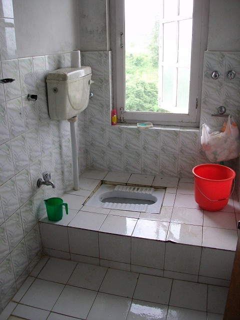 Gotta use the restroom! Here's our squattie pottie and our shower