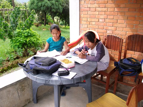 Tutoring the girlies! Alina is on the left and Janisa is on the right