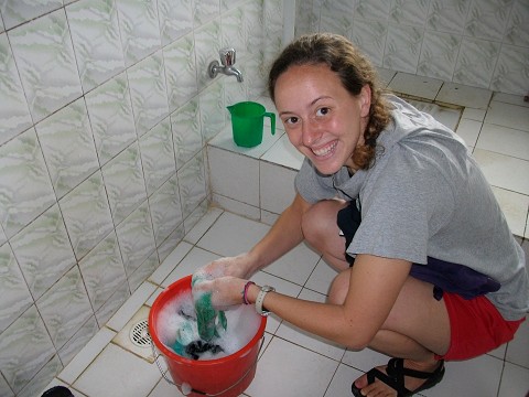 Doing laundry in the bathroom, normally we do it outside but all the women decided to do laundry this day so there was no room, but I made do!