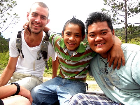 [Allan, Luis, and Phil hitch-hiking in the pick-up truck]