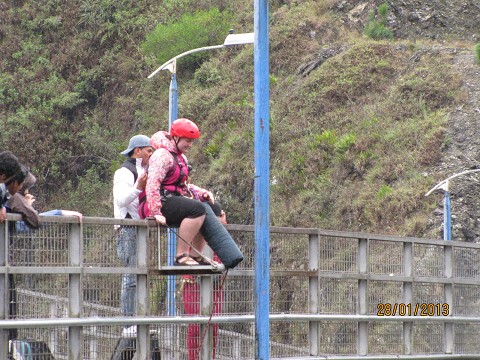 The next day, Emily and I decided to jump off the highest bridge that you can jump off of in Ecuador. It is almost 350 feet high and is NOT a bungee jump. There is no bungee cord, there is just a climbing rope and some pulley anchors.
