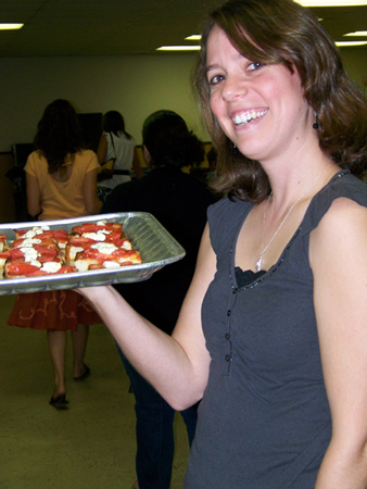 Miss Leah serving goat cheese on toast appetizers to the guests (with a beautiful smile)
