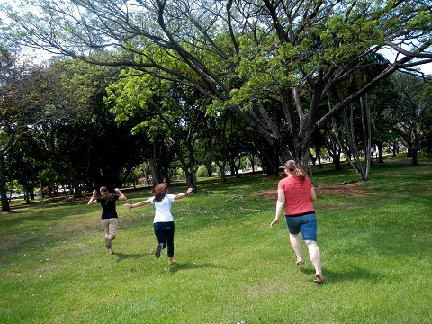 Ran, with arms out wide, through a park of trees with Erin and Emily and laughed and giggled the whole way through!