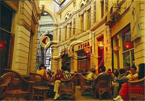 busy streets, ending up in a quaint covered ally in a circle of couches outside