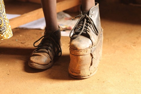 One day, the kids were left alone and Moses slipped and fell into an empty well. He broke his leg and unfortunately it was never treated properly. To this day, he has one leg that is significantly shorter than the other. When the kids were eventually taken to the orphanage, Moses was able to receive shoes that were special-made at a missionary hospital in Nairobi. They operated on his joints, which should occur each year to keep up with his growth. Further, he needs new shoes each year to keep up with his height. He was also afflicted by terrible ringworm that was treated at the orphanage.