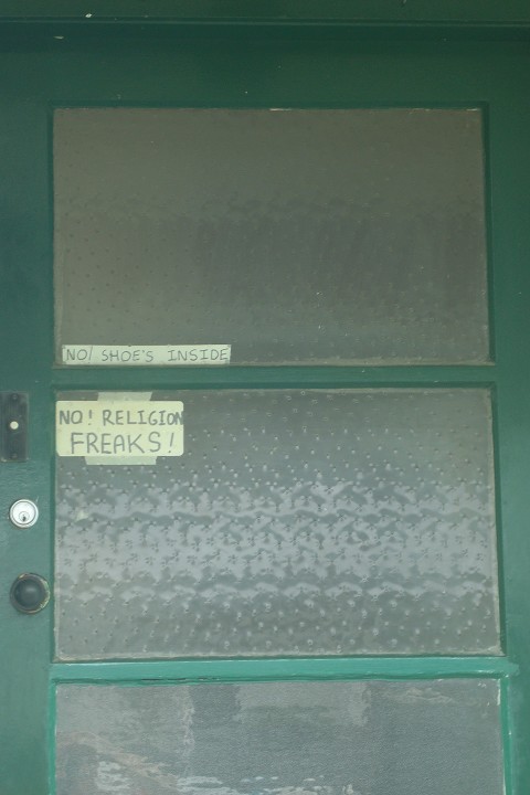 (Check out the sign on the front door of one of the houses we went to in New Zealand)