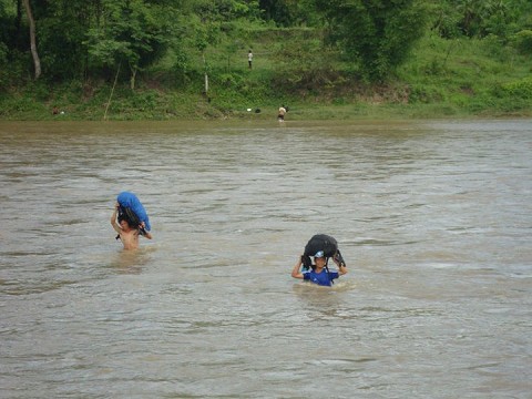 Insert *** 5 hour hike up and down huge mountains with our big packs to get to the next village