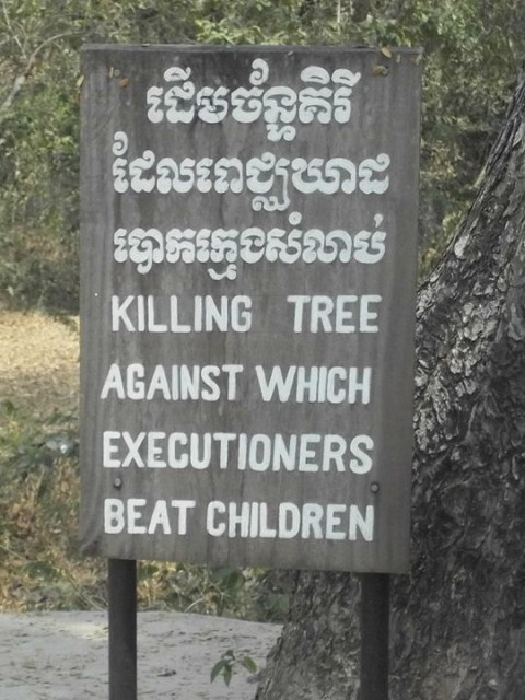 In 1975 Pol Pot’s regime, the Khmer Rogue, overthrew the government and after taking power, they subjected Cambodian people to a radical social reform process, where they executed an estimated 2 million people (>20% of Cambodia’s population at the time). Similar to the German holocaust of the Jews, the communistic government would transport prisoners to these killing fields to be slain & mutilated. There are over 20,000 mass grave sites where prisoner’s dead bodies were dumped & piled into the ground. It is still common even today that prisoner’s bones and clothes surface after a heavy rainfall due to the high volume of dead bodies.
