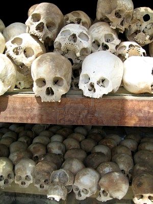 In 1975 Pol Pot’s regime, the Khmer Rogue, overthrew the government and after taking power, they subjected Cambodian people to a radical social reform process, where they executed an estimated 2 million people (>20% of Cambodia’s population at the time). Similar to the German holocaust of the Jews, the communistic government would transport prisoners to these killing fields to be slain & mutilated. There are over 20,000 mass grave sites where prisoner’s dead bodies were dumped & piled into the ground. It is still common even today that prisoner’s bones and clothes surface after a heavy rainfall due to the high volume of dead bodies.