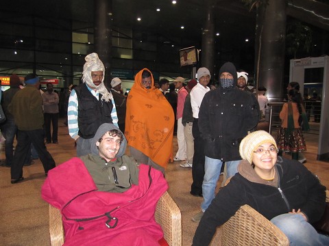 India on the way to Bucharest, Romania.     night in the airport and on the flight!