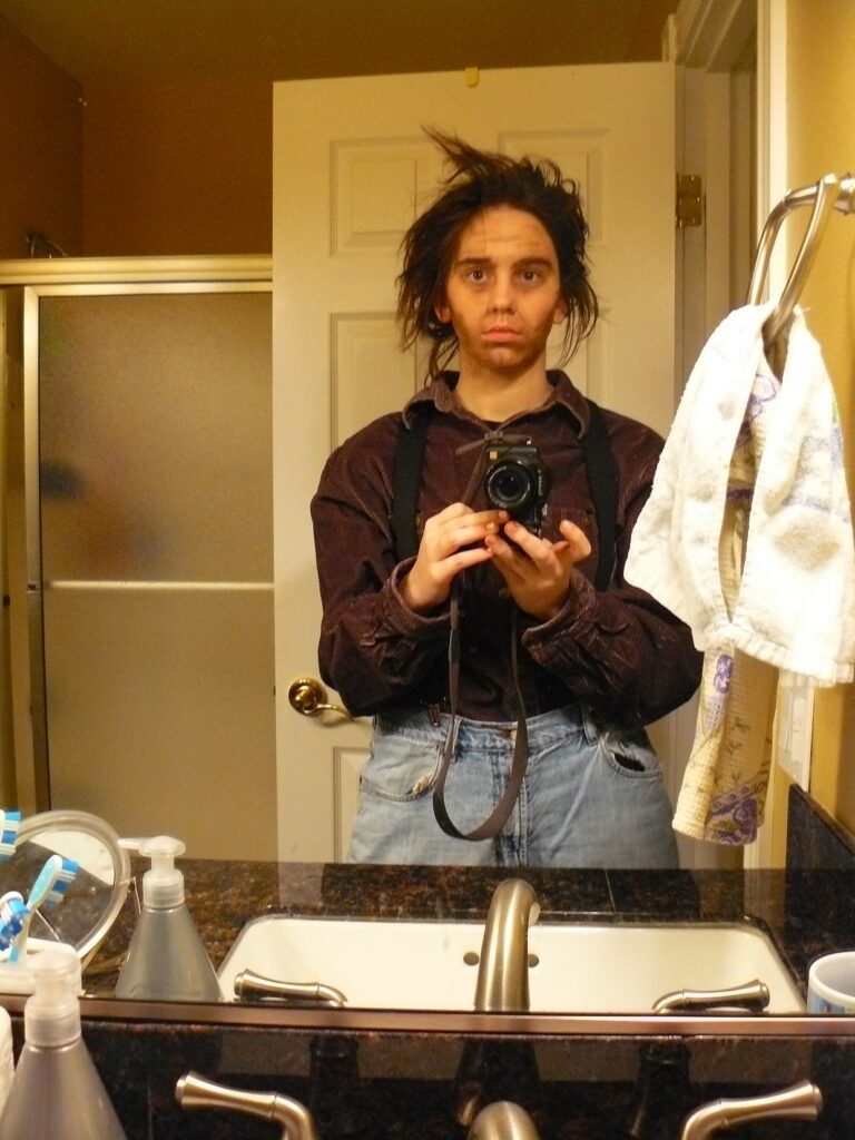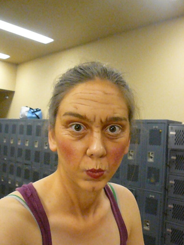 My daring foray into the realm of old age makeup.  Yes, it was for a play.  But it turned out to be equally suited for the grocery store afterwards.