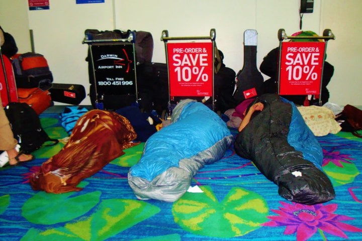 sleeping in the Darwin Airport.