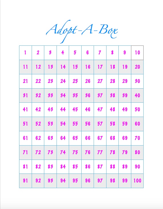 I’ve raised $9,750 so far and I have $5,201 left to raise by my next deadline of December 29th. Since I am fundraising from the field, I have decided to do Adopt-A-Box for my next fundraiser. It will last until December 15th. The way it works is I have a chart attached below with numbers 1-100. If you pick box number 1, then you donate $1 here on my blog. If you pick box 37, then you donate $37. So on and so forth. I will keep the chart updated weekly. When I update my blog, I will attach the chart to the bottom, and as people choose boxes, I will fill in those squares. If all of the squares get filled in, I will be fully funded! When you pick a box, you can email me at [email protected], and I can explain how to donate on my blog if you aren’t sure how.