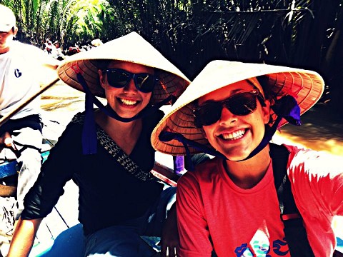 Alyssa and I sporting the local hats on the Mekong River