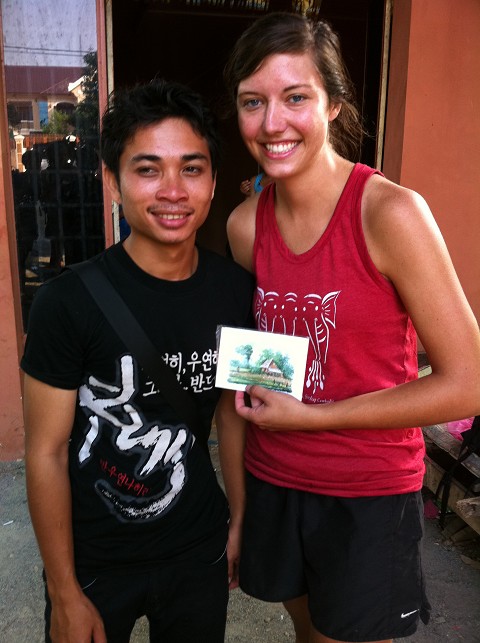 our translator, pastor and new BFF, Thyvenn, with a postcard he painted and gave me for my birthday