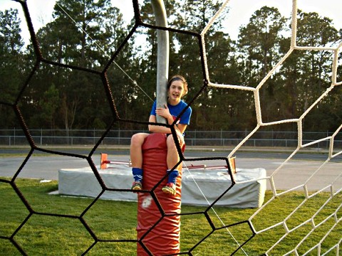 Apparently even climbing the field goal post during high school soccer practice was freeing