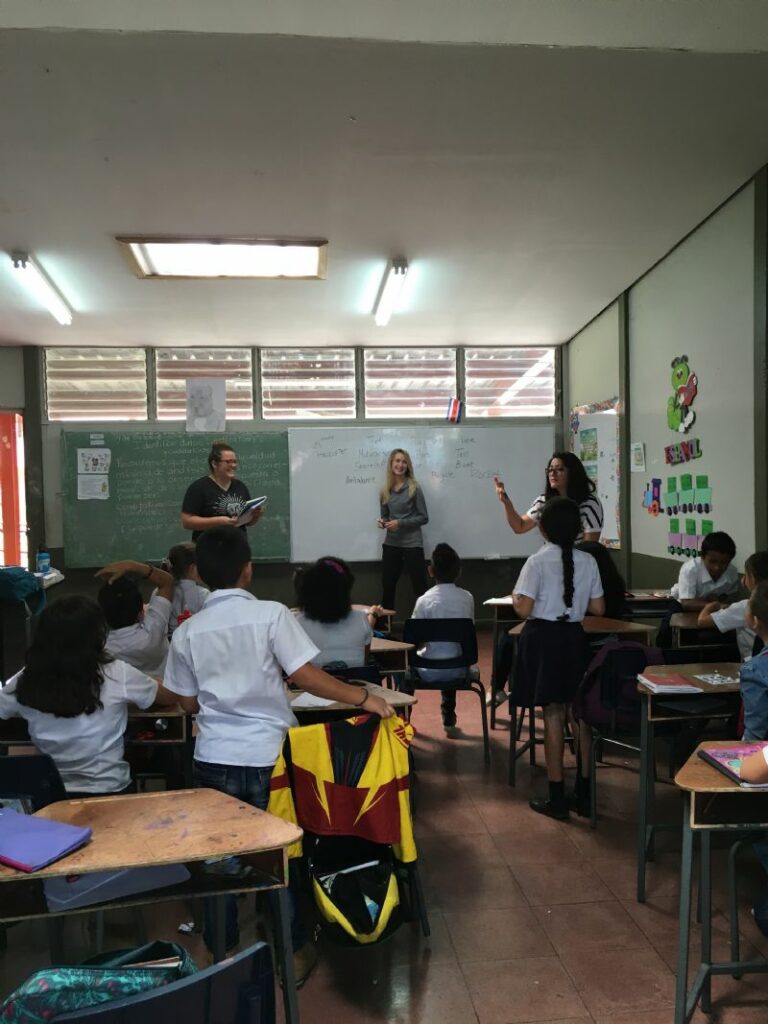 For the first time ever, we have the opportunity to go into one of the public schools here and teach English! Our team of 6 has been divided into three groups of two and paired with an English teacher. Our teacher, Cindy, has about 10 different classes. This is the first time some of these kids have seen people from the United States, and have been super excited to see “gringos!”