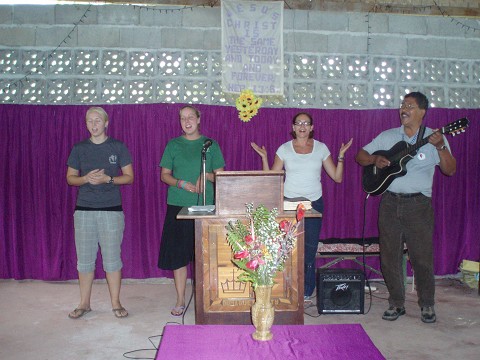 Saturday, our third day here, was thankfully a relaxing day. The bulk of the day was off, which was much needed since ministry usually goes pretty late. I was able to sleep a little later than normal, go running, have my devotional, and then set out to town with Sarah, Brandon, and Lo Lo. We went to Lee Plaza, the shopping area of Dumaguete, and got some lunch, looked for new running shoes, and for a gift for Haley’s birthday. Although unsuccessful, it was nice to have some time in town. We came back to the house and got ready, and then headed off to THANKSGIVING! Of course, thanksgiving was really two days ago, but all the local missionaries were meeting on Saturday to have a potluck Thanksgiving–I even made the mashed potatoes! To sum it up in a word it was AMAZING! It was delicious and a very nice treat!