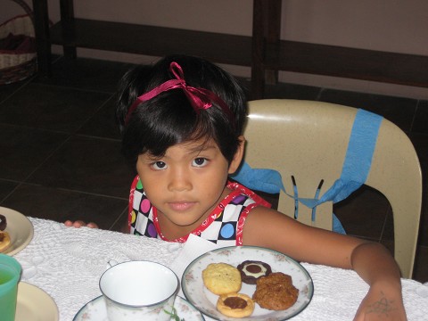 Jessica with her tea and biscuts at the girl’s tea party