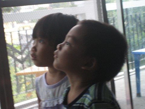 Moses and Angel were captivated by one of the workers installing a curtain rod. But really, it’s a perfect picture for these two buddies, who do everything together!