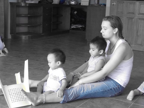 Tita Kendra (a 2mo current volunteer) hanging out with the boys in the nursery