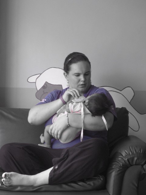 Tita Sharon, one of the current World Racers, feeding baby Heartlyn