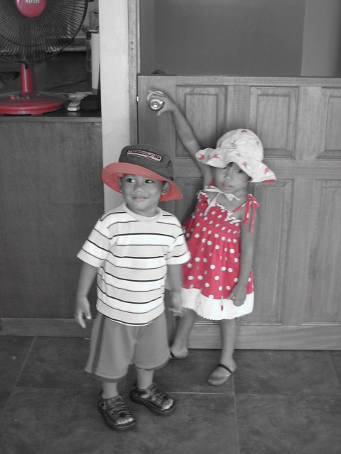 Also one of my favorite pictures…. Angel and Moses all ready to go play outside and stay protected from the sun 🙂 How cute do they look!!!