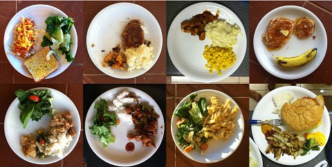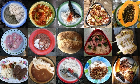 Lunch: Iris's food- rice&spinachy mush, rice&beans, shima&beans, rice&fish (shima is cornmeal mush)