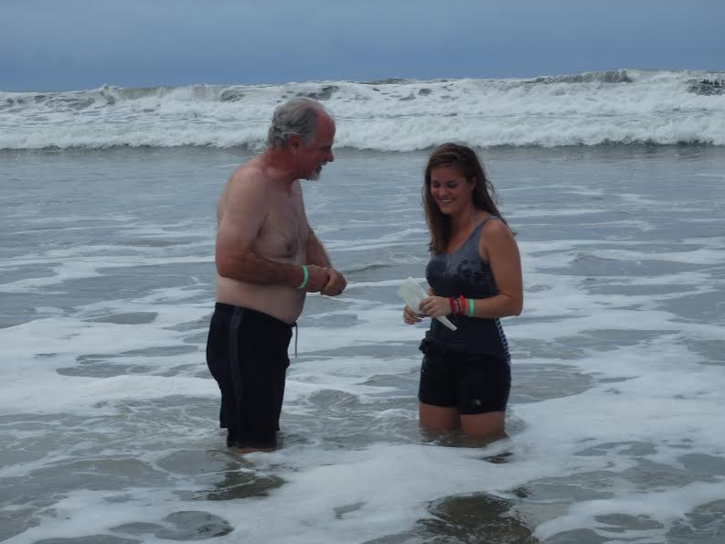 My plan had been that after I was dunked in the water I would rip up the piece of paper where I had written my sins and cast it into the ocean. But right after David had asked me the questions and dunked me, the piece of paper was literally ripped in two and was pulled out of my hand and into the ocean.