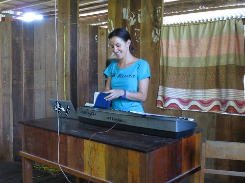 – Our ministry started yesterday, when we conducted sunday school for the little kids in an even smaller, more remote, and poverty-stricken village about 30 min away by dirt road through the jungle. The sight of this "sunday school" will probably remain etched in my mind forever. The structure looked like "the first schoolhouse" of Florida, in a museum I visited in 4th grade in St Augustine. Just wooden walls and a thatch roof- like a tiki hut- and long wooden desk-like tables that the kids sat at…. patiently and somewhat nervously waiting to see what these strange white women would say and do. The kids- they looked like the faces from one of those "adopt a child" Compassion International or World Vision infomercials you see late night on TV.