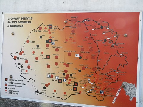<This was a map of Romania's dark history of Communism – these were prisons, torture camps, extermination centers, etc>