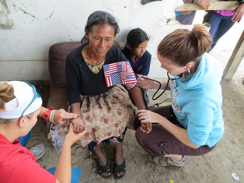 Here are 2 of the girls (who are actually nurses – I was translating for them. They would ask questions, I would translate "where is the pain? dull or sharp? how long has it been hurting? etc" and then they would make diagnosis and give recommendations or prescritpsions! simple as that. can you imagine? haha). Here they are taking blood pressure & vitals.