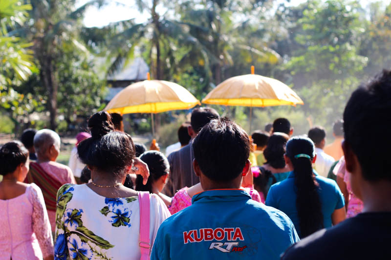 This month we are doing ministry in the village of Poi Peyl, a small, remote village just outside of Siem Reap. Our village Chieftess was hosting her daughter’s wedding this week and kindly invited her foreign village guests. Here are some pictures I took of the multiple day celebration and wedding fruit walk that we participated in; offering fruit to the bride and grooms parents.