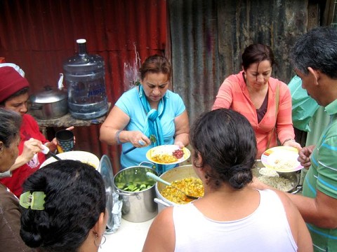 The feeding center, hosted by 6:8's Celebration Church is designed to minister to the spiritual and physical needs of the homeless in the Alajuelita community. The feeding center has helped to strengthen their church through providing an increased presence in the community. The feeding center currently feeds three days a week with hopes of expanding to five days a week. There is a message spoken before every meal to provide spiritual nourishment as well.