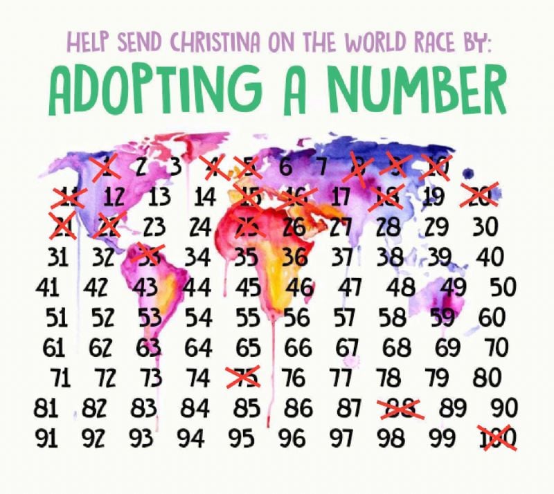 Once I am notified of your donation, the number “adopted” will crossed off the chart.