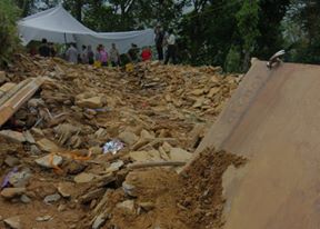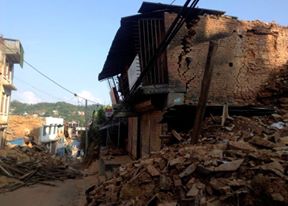 Then the time arrived that we headed out to the village most affected by the April 25th earthquake. It was said that many of the homes had fallen and many deaths and injuries occurred. So we took a 5 hour bus ride into the mountains and hiked 45 minutes down into the mountain villages as the photo above shows what we saw when we arrived!