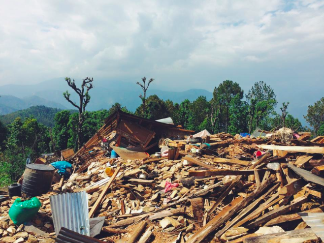 The church from above was our first task to clean up, so that it could be rebuilt and a the believers of the area could have a new place to meet. So, at the end of the morning, this is what was left. We took a break to have a Nepali meal, that I was able to help make, which gave me the precious opportunity to spend quality time with the women of that village. After lunch, we were sitting, visiting with each other and staring off into the vastness of the valley surrounded by the mountains and its beauty!