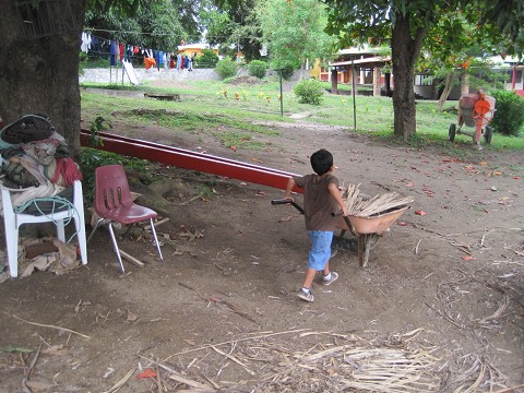 Yessel blesses me. He has a smile that lights up his entire face and an eagerness that only little children can posses. He runs (or struts, depending on his mood) by me every day on the way to breakfast and always stops to turn around and hug me. In the afternoons when I’m done with the morning construction/garden/kitchen work, I see him diligently sweeping the grounds with a broom that’s twice as tall as him.